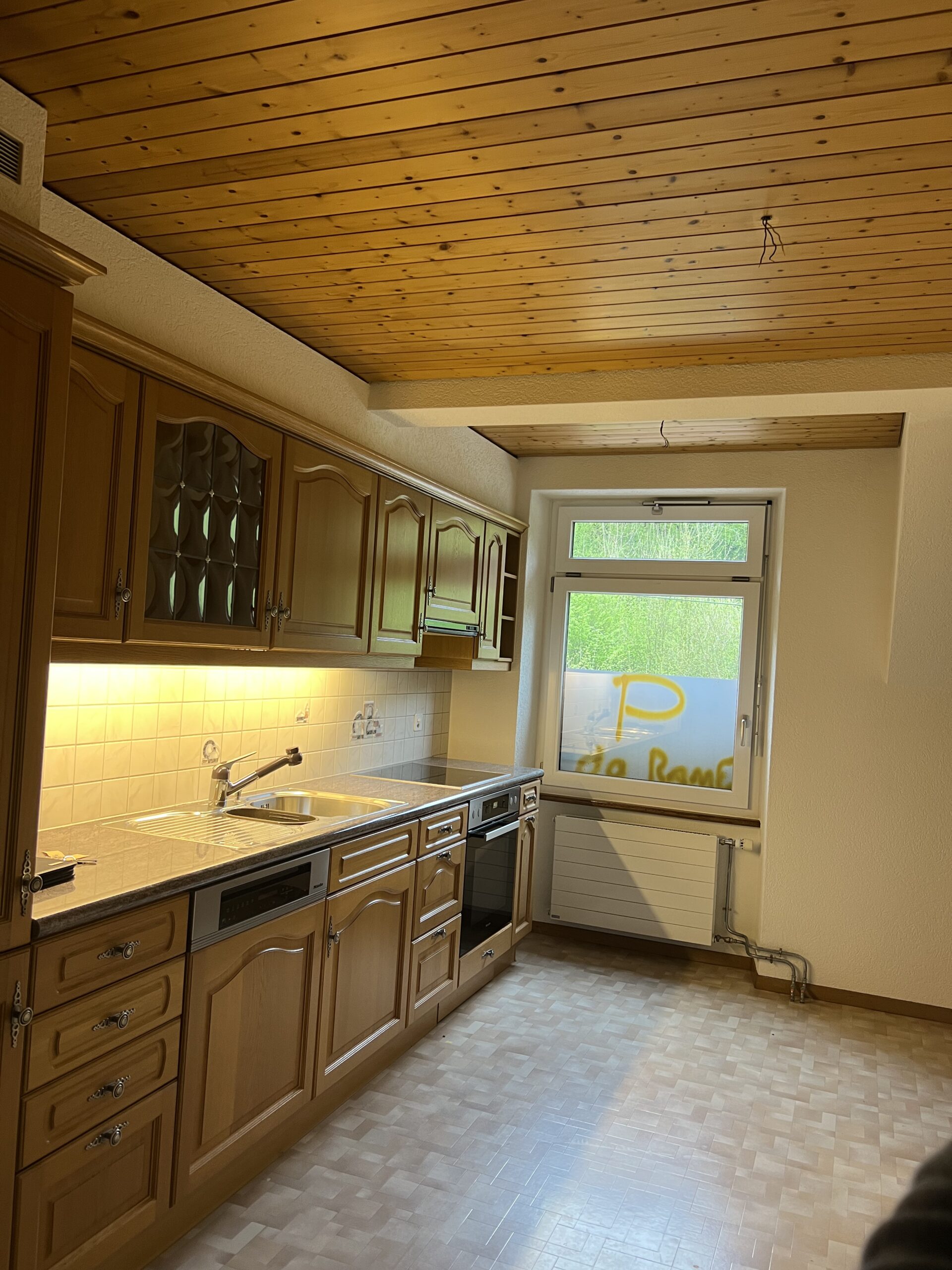 - moderne, grosszügige Küche mit viel Stauraum, Geschirrspüler, Backofen, Glaskeramikherd und Platz für einen kleinen Esstisch