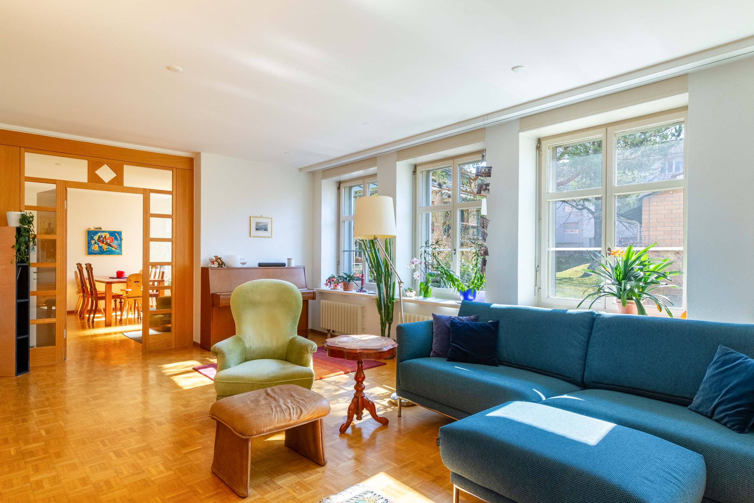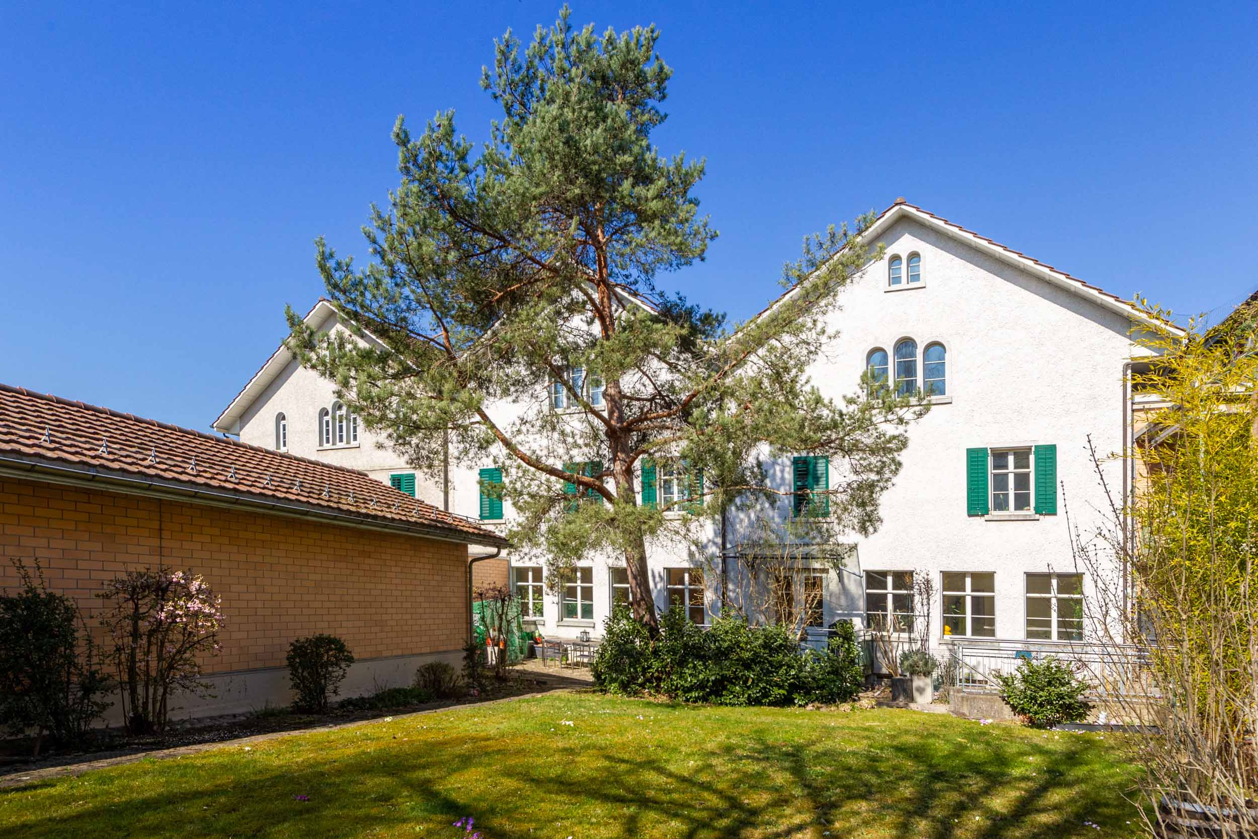 die EG-Wohnung für ein fantastisches Wohnerlebnis. Das Anwesen ist in eine grüne Umgebung eingebettet und bietet trotz der verkehrsreichen Tösstalstrasse, geschützt von Lärm, eine ruhige und dennoch zentrale Lage. Die Wohnung im Hochparterre besticht durch ein großzügiges Raumangebot mit viel Fenstern, welche für eine optimale Lichtdurchflutung sorgen. Die wertige Ausstattung umfasst Parkettböden und eine helle Inneneinrichtung. Der Eingangskorridor führt zu 3 vielseitigen Zimmern und 2 Nasszellen WC/Dusche. Ein eleganter Bogendurchgang führt in das großzügige und lichtdurchflutete Wohnzimmer, das herrschaftlich mit dem Wohn- und Essbereich verbunden ist, welcher durch ein separates Reduit ergänzt wird. Ein weiteres geräumiges Zimmer mit eigenem Badezimmer, der teilweise gedeckte Balkon mit direktem Zugang zu Sitz- und Gartenbereich mit Blick in den weitläufigen Innenhof, 2 Parkplätze in der Tiefgarage, 1 Kellerabteil sowie 1 Waschturm gegenüber Kellerabteil runden dieses einzigartige Angebot ab.