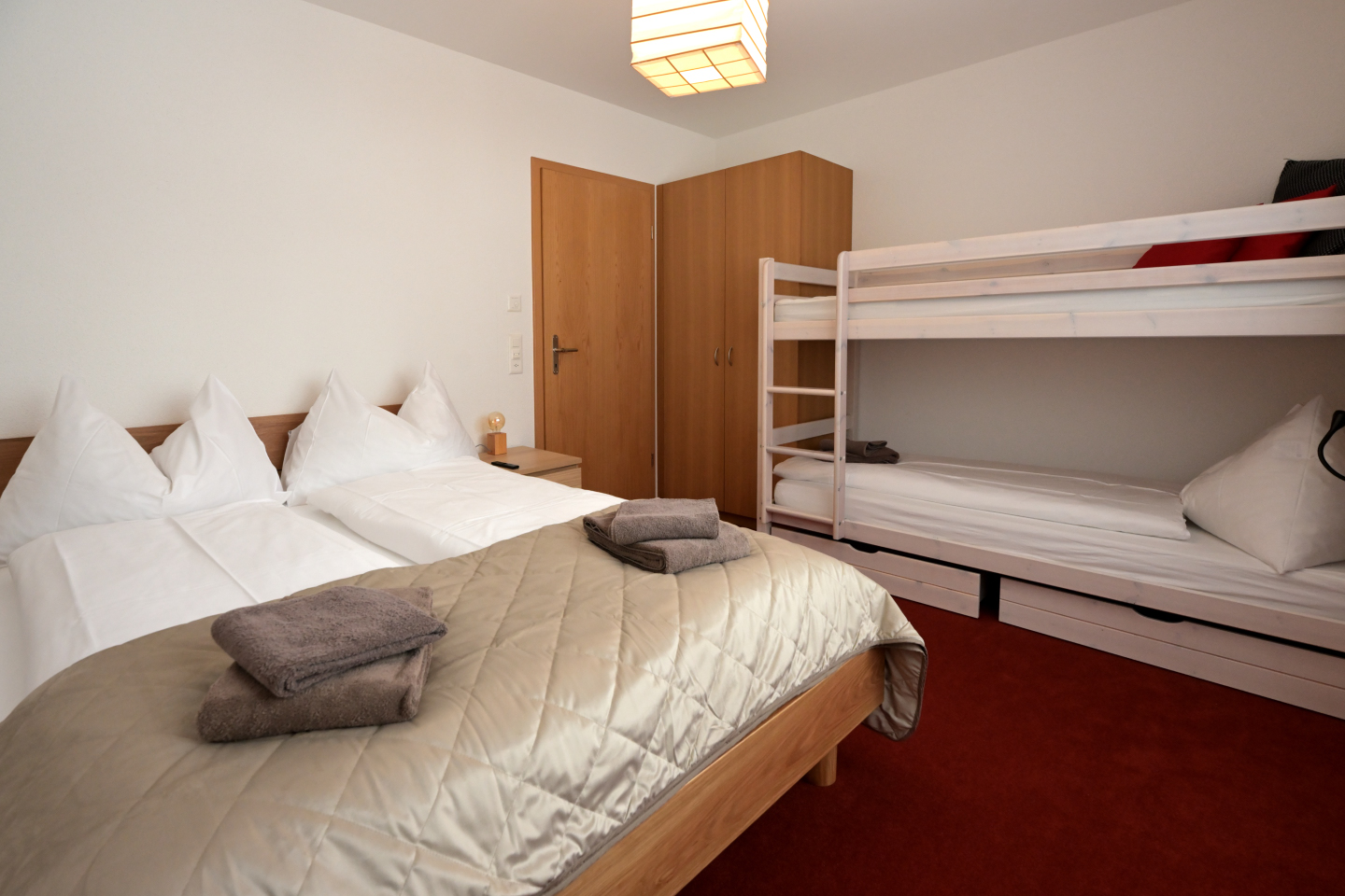 1 Schlafzimmer mit Doppelbett (180×200 cm) + Stockbett (90×190 cm)